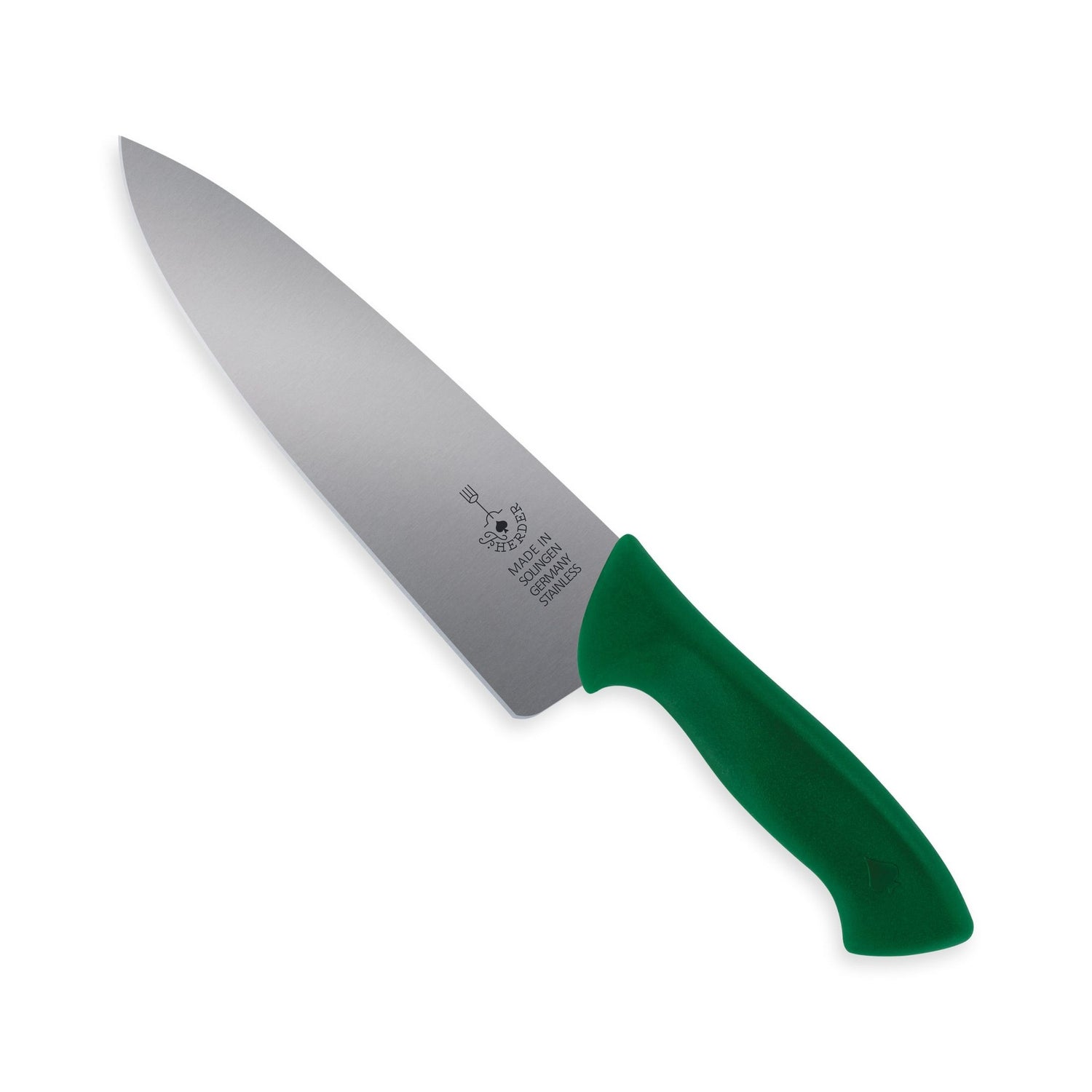 Das Kochmesser ist das vielseitige Universalwerkzeug in der Küche. Mit seiner 3 mm robusten und breiten Klinge schneidet es mühelos Fleisch, Fisch und Gemüse. Präzise und scharfe Schnitte sind dank seiner Vielseitigkeit garantiert. Ein Muss für jeden Koch!