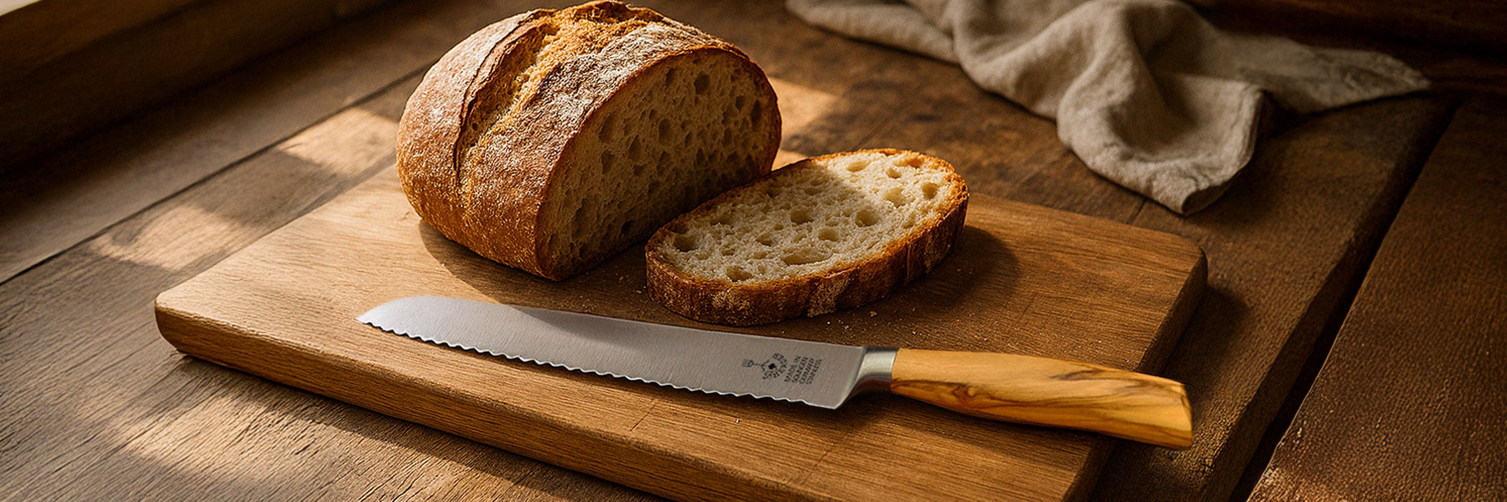 Das Brotmesser ist ein essenzielles Werkzeug für die mühelose Verarbeitung von Brot und anderen Backwaren. Mit seiner langen, gezackten Klinge ermöglicht es sauberes und präzises Schneiden von knusprigen Krusten und weichen Innenbereichen, ohne das Gebäck zu zerdrücken. Dieses spezialisierte Messer bietet optimalen Komfort und Effizienz bei der Zubereitung von belegten Broten, Brötchen und mehr.